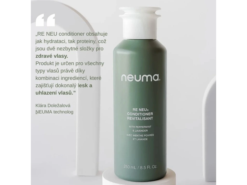 Po umytí RE NEU SHAMPOO® naneste kondicionér na vlasy. Uvolněte se, počkejte minutu a opláchněte.